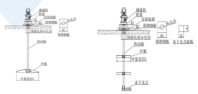 根据不同搅拌目的采用多种不同形式的斜叶桨式叶轮,叶轮的材质可分为碳钢、不锈钢、衬胶、衬塑(PO)等。主要用千低粘度的液体混合、溶解、固体悬浮、传热、 反应、分解、粉碎及环保行业的加药搅拌机等。