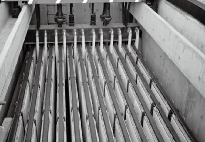 反冲洗:随着过滤的进行, 悬浮物在滤布表面逐渐累积,过滤速度逐渐减小,池内水位逐渐上升。当水位上升到预定水位时,开始进行负压抽吸反冲洗;竖式滤片固定不动,随着移动冲洗行车的移动和吸泥泵的启动,开始对滤片上的污泥进行线状扫吸。吸出的泥水由水泵排出池外,行车移动一个行程后, 滤布被清洗干净。