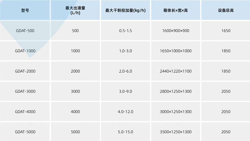 型号及主要技术参数