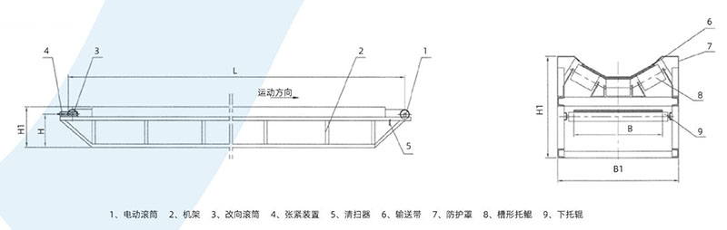 该设备采用连续式槽型带式,物料由格栅或脱水机卸料口落入输送带上,在电动滚筒的驱动下,物料从一端移动到另一端,末端与垃圾桶相衔接,再另行处理。